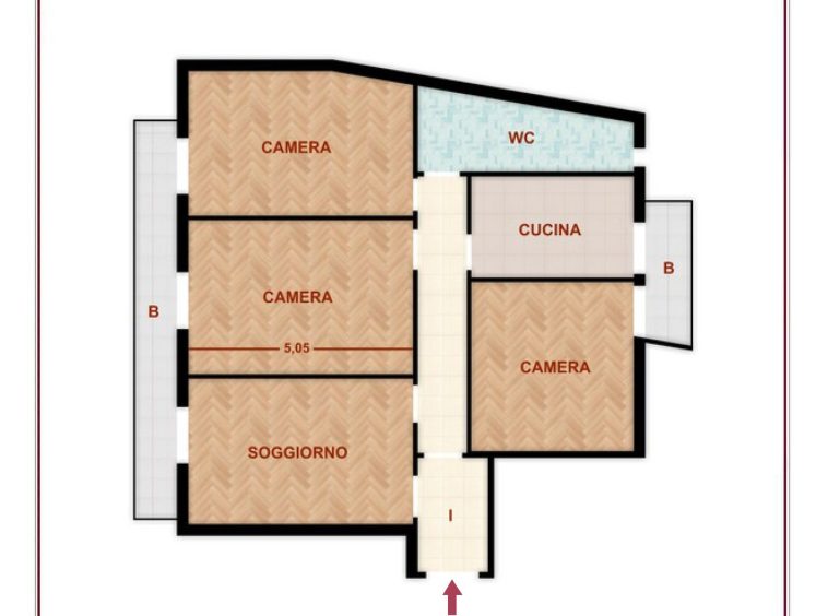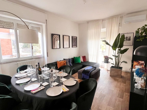 L’immobile, inserito in un contesto tranquillo e riservato, si presenta con un comodo ingresso in ampio disimpegno, soggiorno, cucina abitabile, tre camere da letto, servizio e due ampie balconate con piacevole affaccio nel verde.